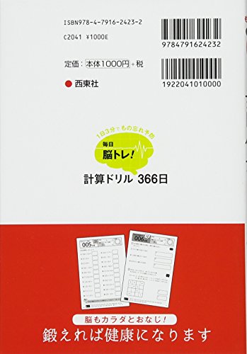 「1日3分でもの忘れ予防/毎日脳トレ! 計算ドリル366日」は、1日1ページ、1日3分間で脳が活性化する大人ドリル。