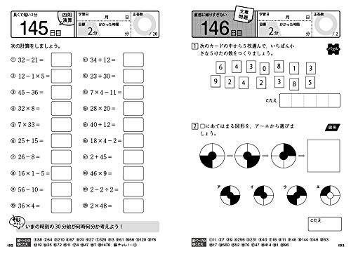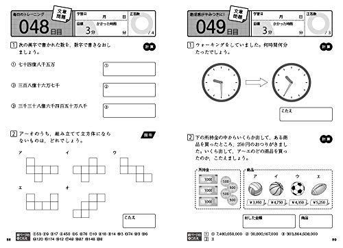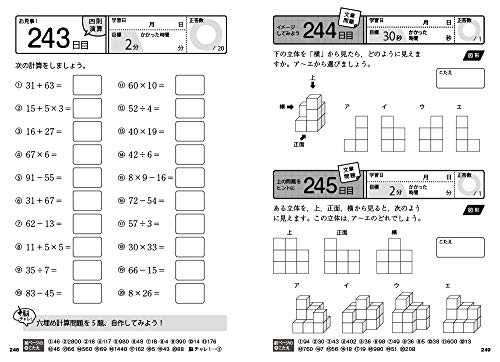 内容は、「足し算」、「引き算」、「かけ算」、「わり算」から「図形問題」や「文章問題」などが366日分収録されている。
