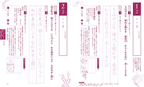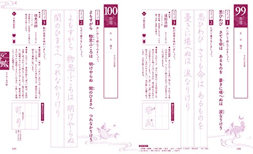 さすが百人一首だけあって100日分のボリュームがあり、毎日1ページずつ進めていくと字が少しずつ矯正されて綺麗に書けるようになるというものだ。